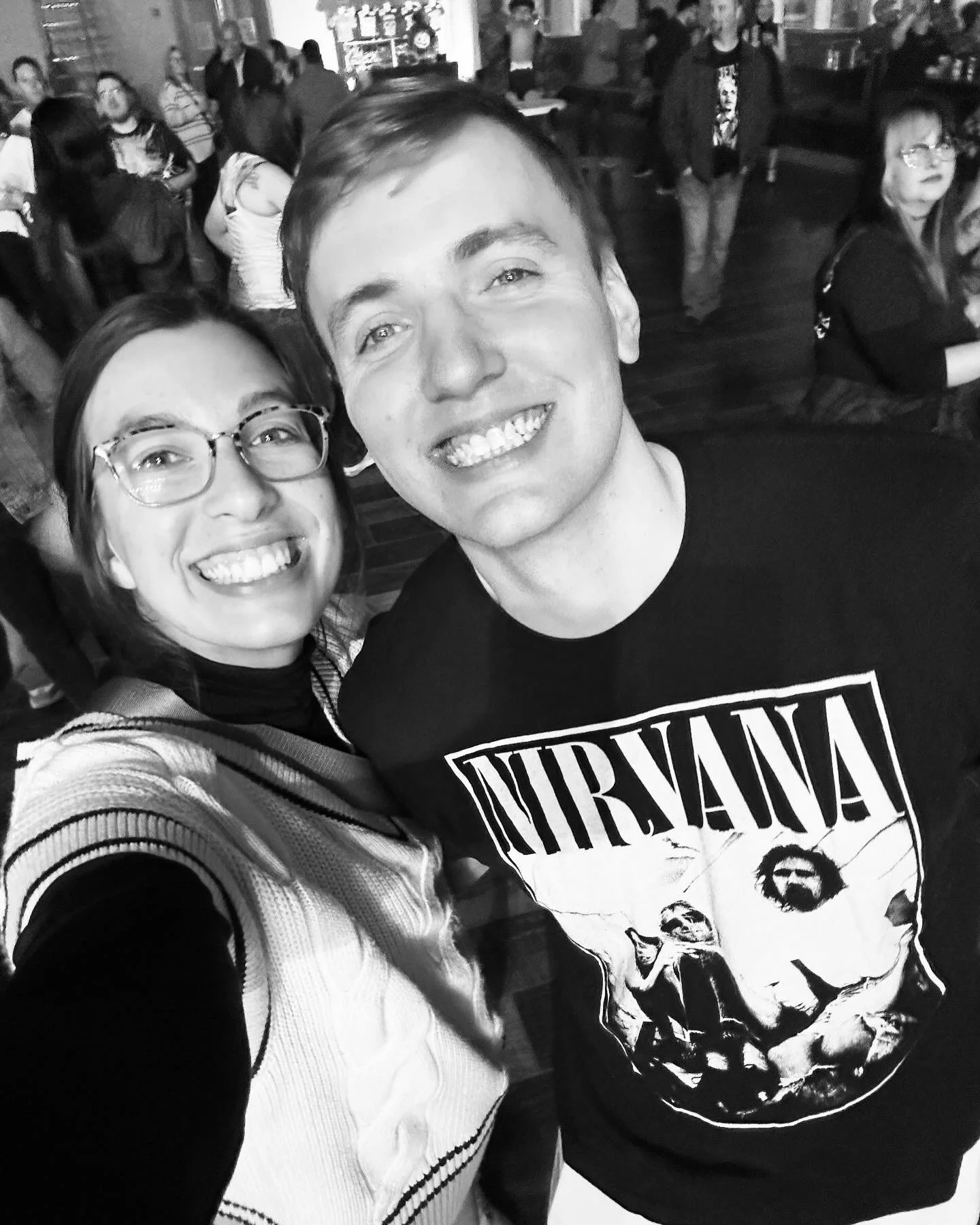 When we first touched eyes at a middle school dance, he wasn't gazing at Emily but rather at flashing lights and the energy that built up when a new song started. (The real connection began off the dance floor while playing dance dance revolution at the Webb House, iykyk ;-))