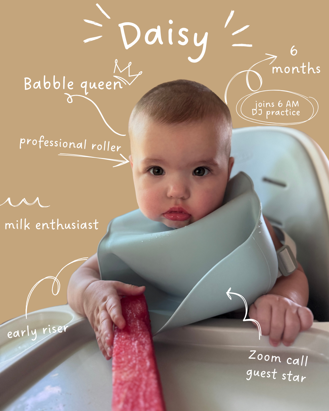 Daisy is our new BFF as of 12/28/24! We love our DJ business so much, that we knew we had to weave it into her name (DJ). She gives us so much joy and love that we didn’t know was possible. When we aren’t DJing weddings or events or working our full-time jobs, we are out on family walks, cuddling with Daisy, flipping through high-contrast books with her, or smiling 2 inches from her face to make her smile. :-)